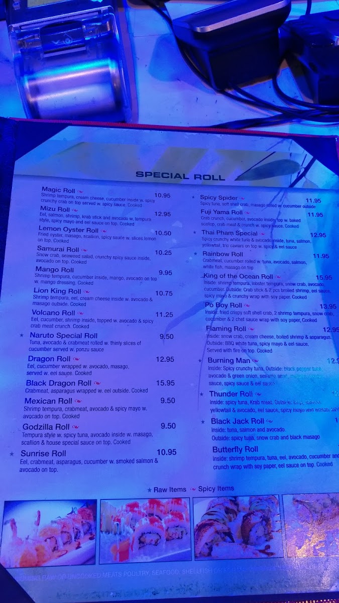 SOME SUSHI ROLLS CONTAINS RAW ITEMS, To find out what's inside the rolls, go to ALL DAY MENU--->MAKI OR TEMAKI
